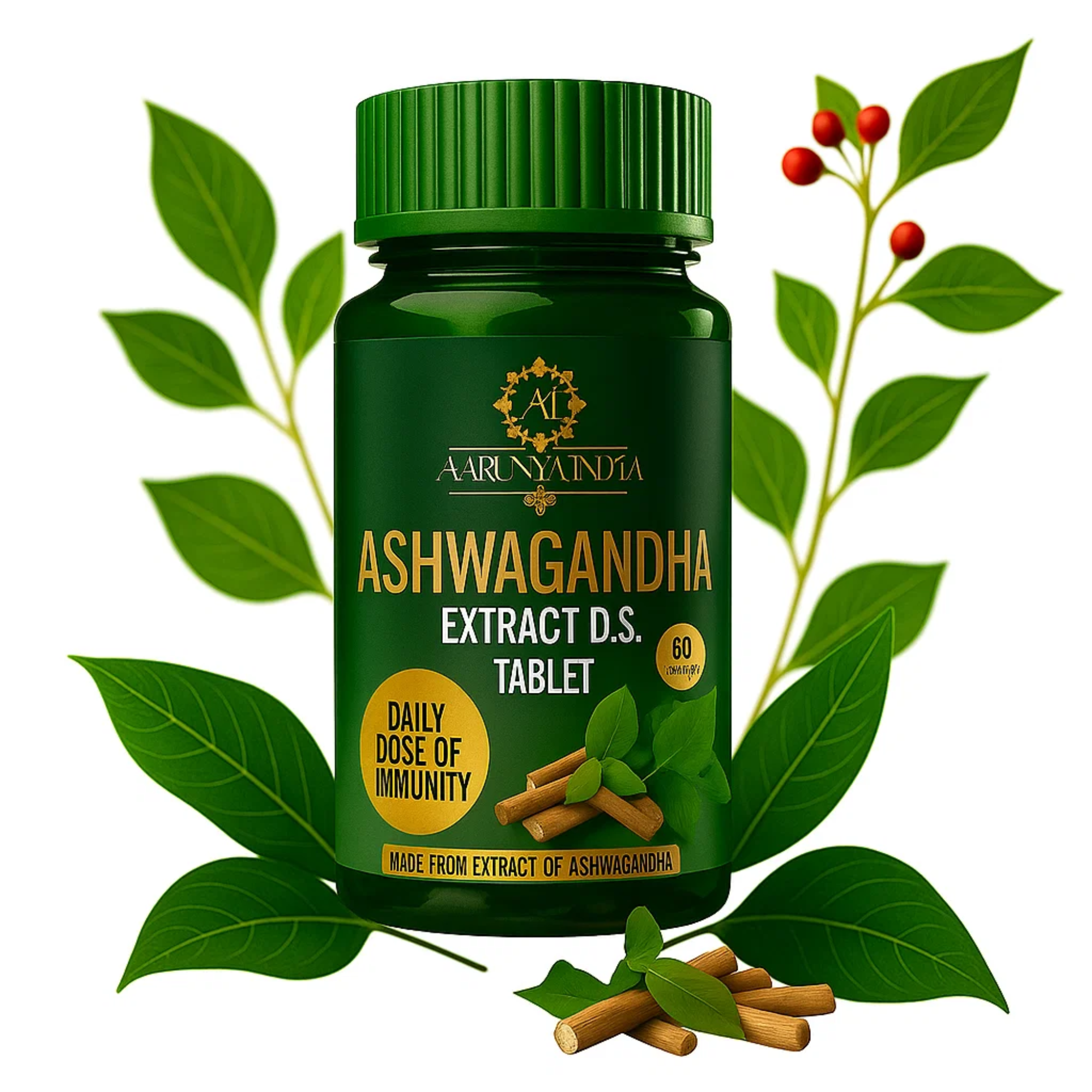 Reclaim your inner calm and fortify your body with a time-tested Ayurvedic remedy—Ashwagandha Extract D.S. Tablets. Each tablet contains 500 mg of high-potency Withania Somnifera root extract, known for its adaptogenic qualities that help the body manage physical, emotional, and environmental stress. Traditionally used in Ayurveda for over a thousand years, Ashwagandha works holistically to revitalize the nervous system, restore stamina, and promote overall vitality.