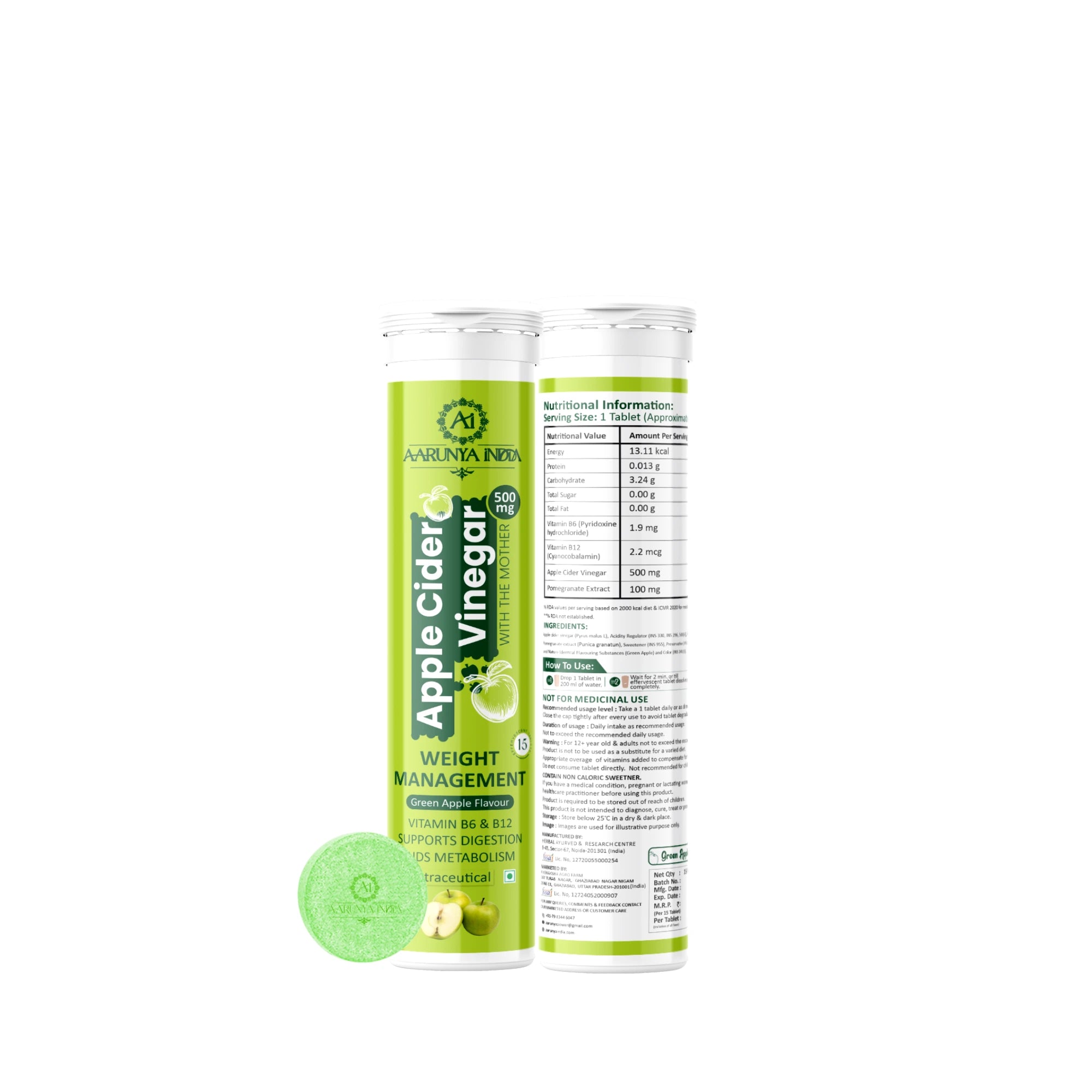 Take your wellness to the next level with Aarunya India's 500mg Apple Cider Vinegar (ACV) effervescent tablets in a refreshing Green Apple flavor. Designed for modern health enthusiasts, these tablets deliver the powerful benefits of traditional ACV in a convenient, travel-friendly, and delicious format. Whether you're managing your weight, improving digestion, or enhancing overall well-being, this product is your perfect companion at home or on the go.